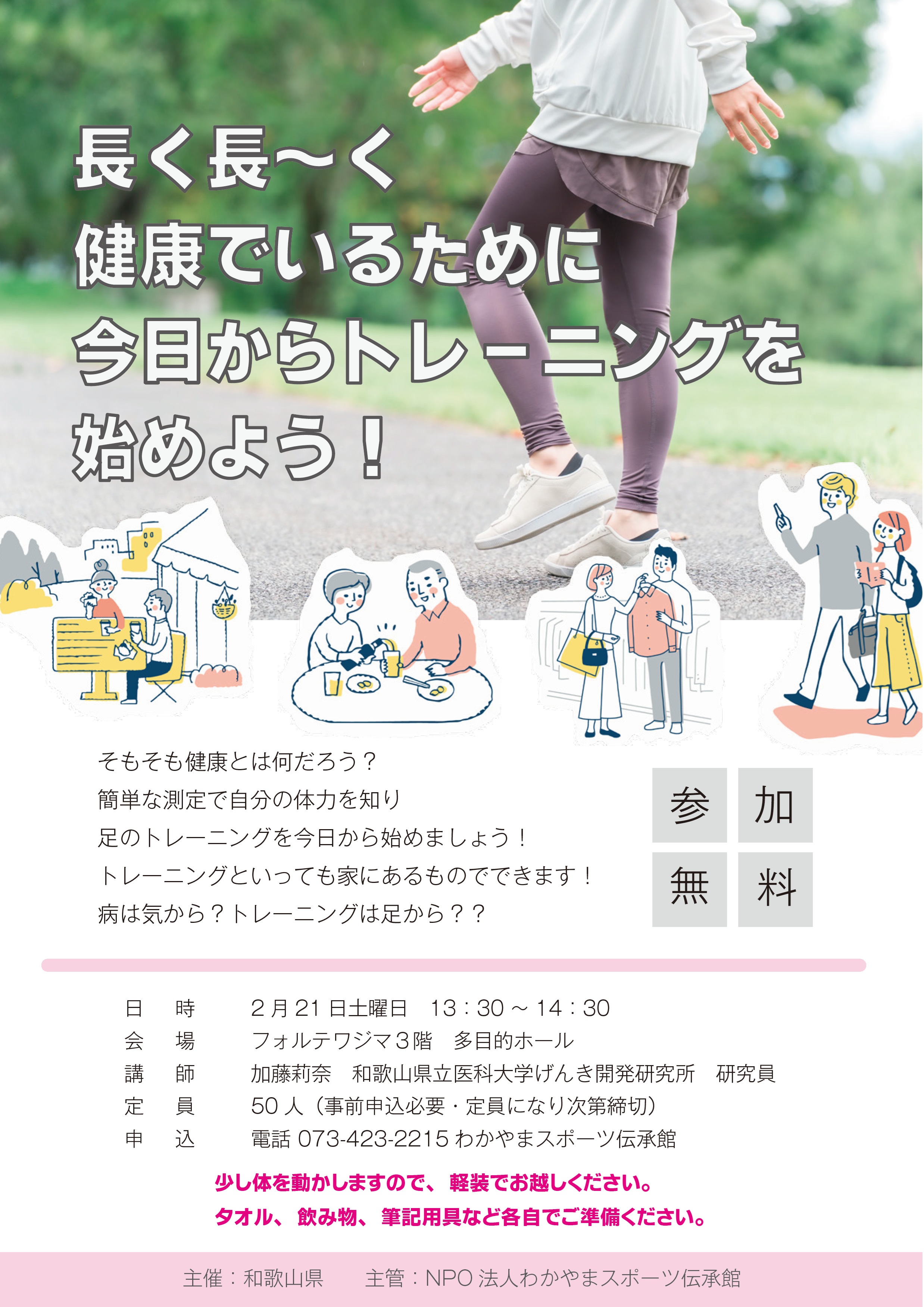 スポーツセミナー「長く長~く健康でいるために今日からトレーニングを始めよう!」2月21日